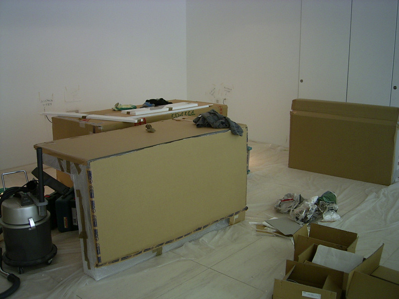 店内にある大階段を上がって二階に設置なのですが、搬入には非常に気を使いました。