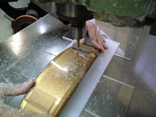 まずはアクリルの透明10mmをルーター加工でフットボール形状にして、
