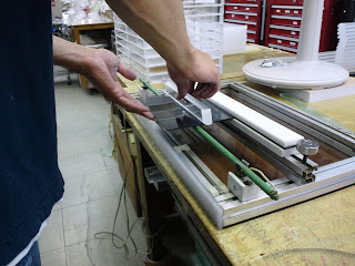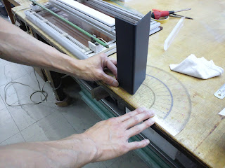 アクリル曲げヒーターの熱によって光沢が出てしまわない様に気を付けて曲げます