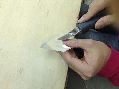 角多面体の展開を、アクリル1mm板でレーザーを使って切り出します