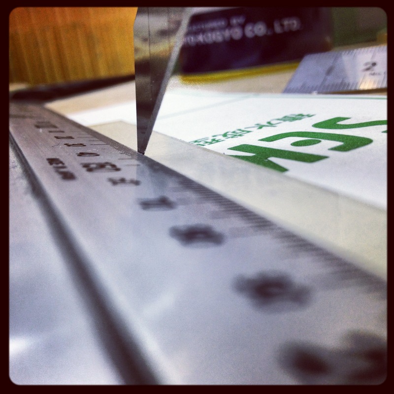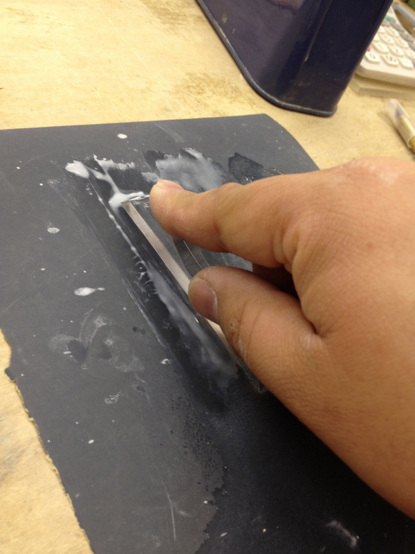 一定の間隔で次のパーツを貼る為に、溝幅の型を使います。