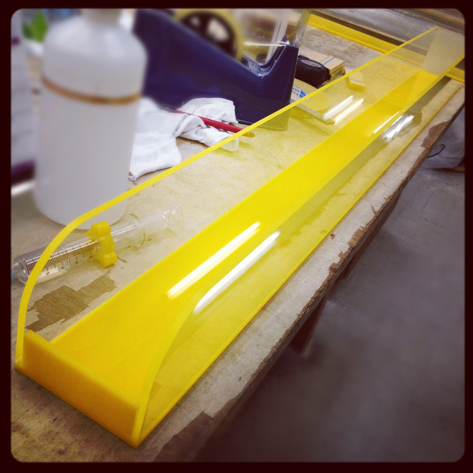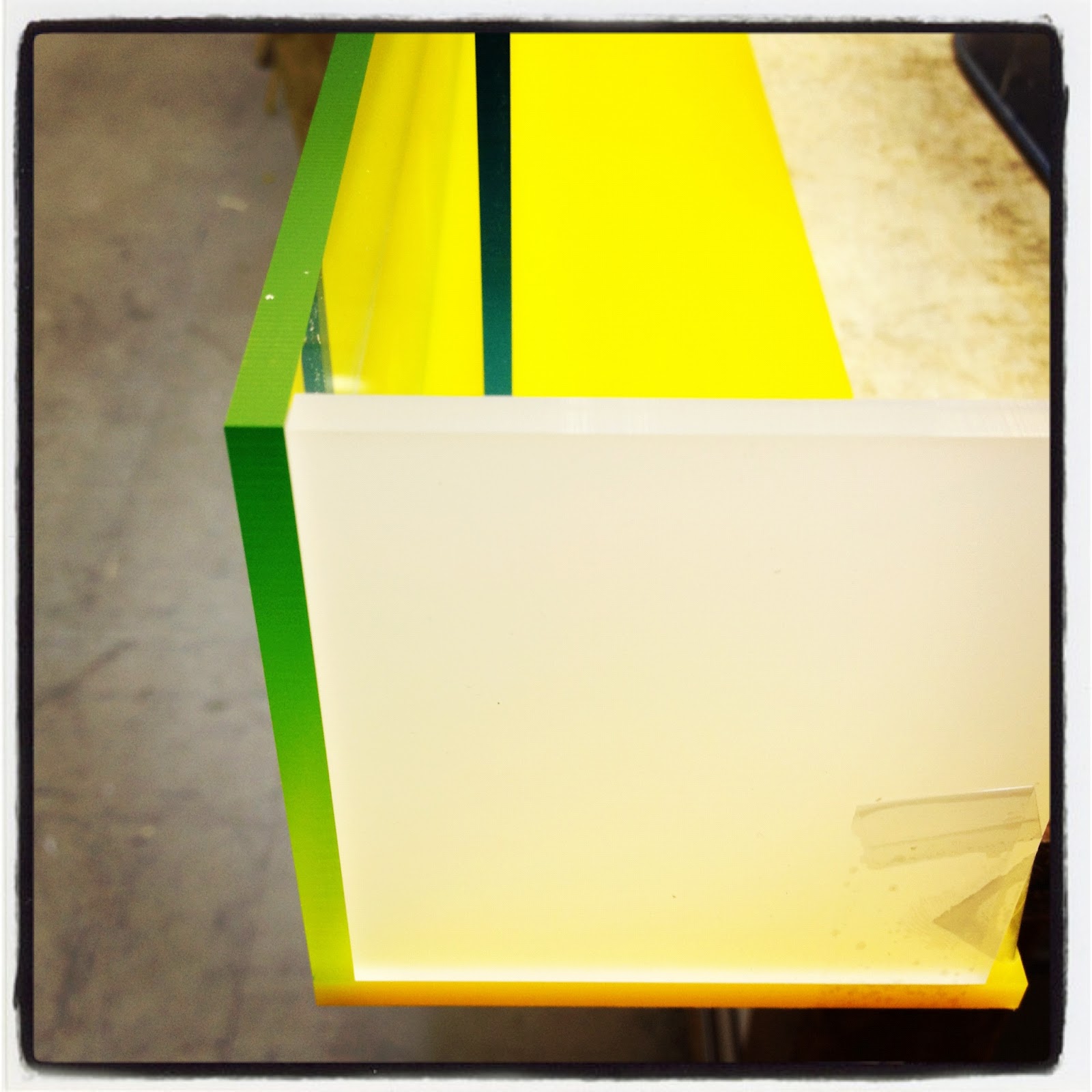 違う色のアクリル同士を接着すると、お互いに色が溶け合って綺麗なのです♪