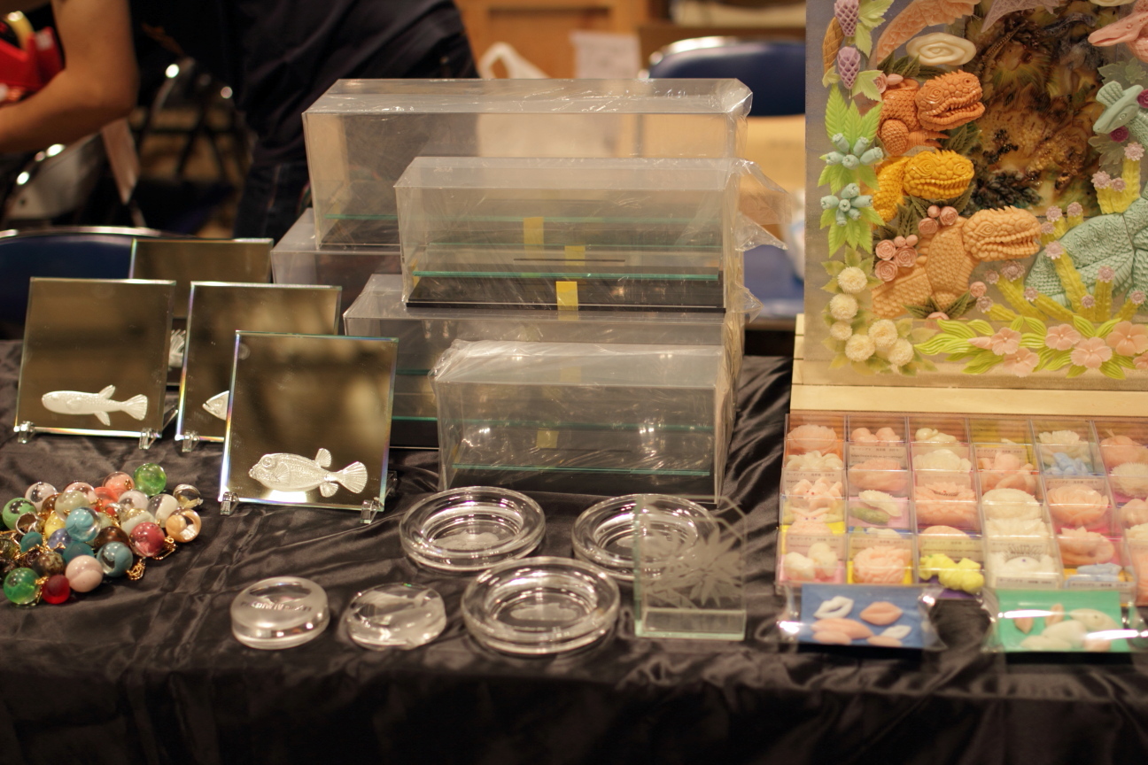 その他にも硝子にエッチング施した灰皿やコースター